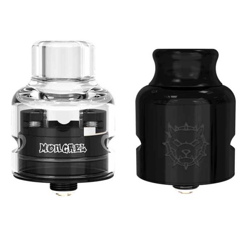 Buy the Damn Vape & Vaping Insider Mongrel 25.4mm BF RDA, a collaboration project between YouTube vape reviewer Vaping Insider, Decus Jack, and Damn Vape. Constructed from superior stainless steel, the Mongrel features a semi-postless build deck and four hexagonal screws secured terminals to offer users a single-coil build situation via an extremely simple building procedure. Fitted with two optional inner airflow regulation sections, users can switch from intensely vaporous DL vaping to immersively restricted DL vaping with ease. With dual giant slots on the base, the Mongrel provides users an impressively convenient adjustment method to take full advantage of the incoming airflow. What's more, users can change the exterior of the Mongrel by replacing the metal top cap section with a glass top cap section to deliver their own expressions on vaping aesthetics.