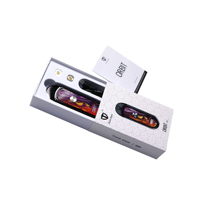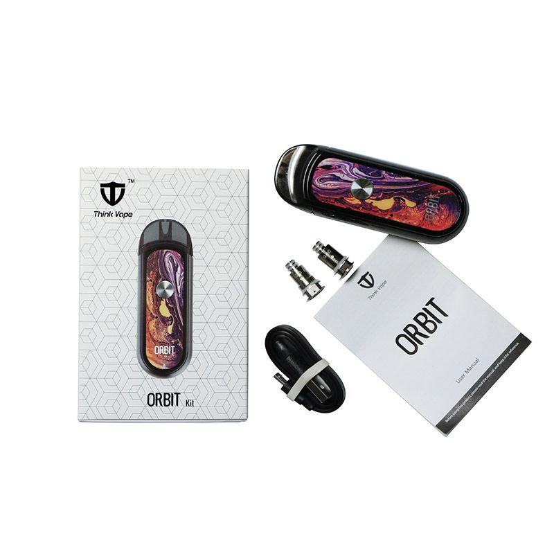 Think Vape Orbit Pod Kit, a new fashionable pod system kit by Think Vape, which comes with colorful resin panels and pocket-friendly size. Powered by 1000mAh built-in battery with 3.5V constant voltage for durable vaping life. The 3ml refillable cartridge with easy bottom filling design without leakage which provides easy operation and brings you smooth airflow and optimal flavor. Moreover, there are two coil types for your selections according to your preference, with 0.6ohm mesh coil and 1.2ohm regular coil respectively. The 0.6ohm mesh coil designed for sub-ohm vaping, while the 1.2ohm regular coil specially designed for MTL vaping. What's more, the clear indicator light displays the battery level. Come to get it now and enjoy the sparkle brought by Think Vape Orbit Pod Kit.